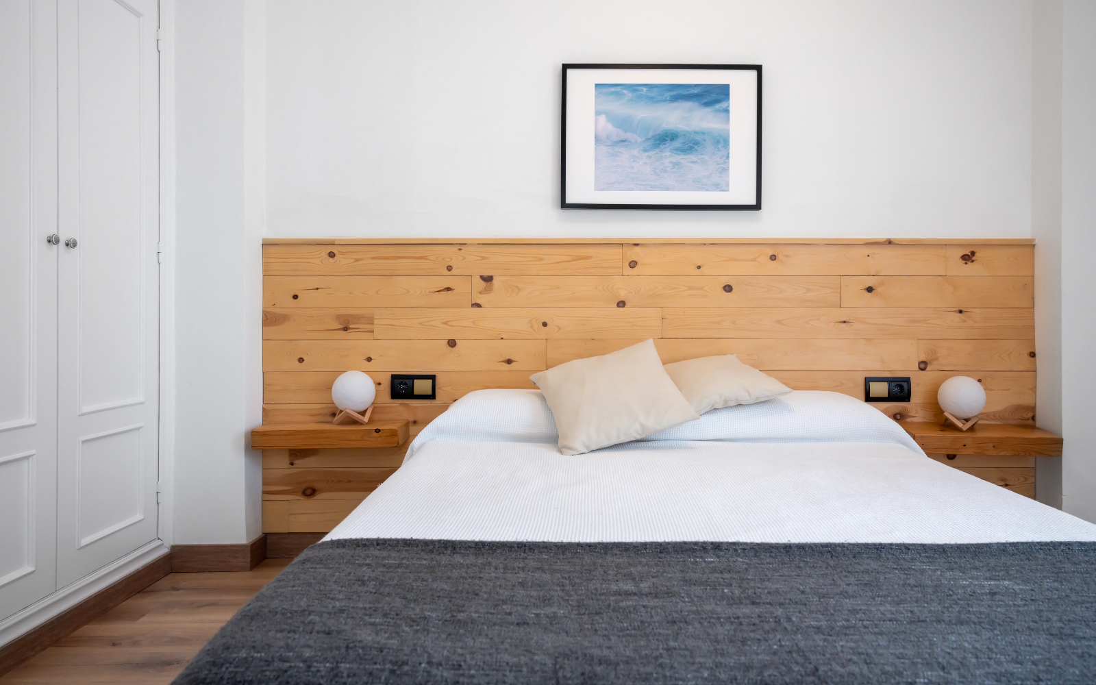 Dağ manzaralı özel bir pencereye sahip, modern mobilyalarla döşenmiş şık tasarım.